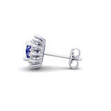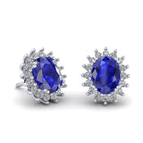 Aretes Ovalado Estrella con Zafiro Natural de 6mm x 8mm y Halo de Diamantes en Oro Blanco de 14K
