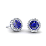 Aretes Redondos de Zafiro Natural de 6mm y Halo de Diamantes en los aretes.