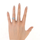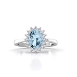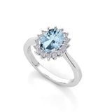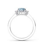 Anillo de Compromiso Halo "Kate Middleton Aqua" con Aguamarina Natural de 8x6mm en Oro de 14K