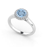 Anillo de Compromiso Halo "Flare Aqua" con Aguamarina Natural de 6mm en Oro de 14K