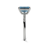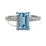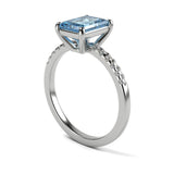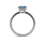 Anillo de Compromiso Pavé "Meghan Markle Aqua" con Aguamarina Natural de 8x6mm en Oro de 14K
