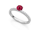 Anillo de Compromiso "Serenity Ruby" con Rubí Natural Redondo de 6mm y Diseño Clásico de 4 puntas Ancho de 2.0MM en Oro de 14K con 0.25 quilates de diamantes en el pavé. El precio ya incluye el Rubí Natural, la montura y la caja para entrega. Disponible en oro rosa, blanco, amarillo y platino.
