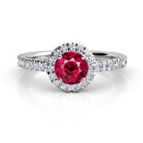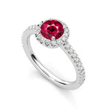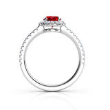 Anillo de Compromiso Halo y Pavé " Nova Ruby" con Rubí Natural de 6mm en Oro de 14K