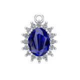 Pendiente Ovalado Estrella con Zafiro Natural de 6x8mm y Halo de Diamantes en Oro Blanco de 14K