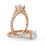 Anillo de Compromiso Estilo Doble Pave de Diamantes Cuerpo Partido de Diseño Exclusivo y ancho de 1.82mm esta hecho en Oro Rosa de 14 Kilates e Incluye 0.24 Quilates de Diamantes en la Montura. Puedes seleccionar el Diamante de tu preferencia para esta Montura o nos puedes contactar para que te ayudemos a elegir el Diamante ideal contigo. Precio es por la Montura Unicamente.