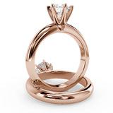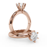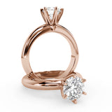 Anillo de Compromiso Estilo Solitario con Diseño Exclusivo de Seis Puntas y hecho en Oro Rosa de 18 Kilates. Puedes seleccionar el Diamante de tu preferencia para esta Montura o nos puedes contactar para que te ayudemos a elegir el Diamante ideal contigo. Precio es por la Montura Unicamente.