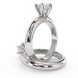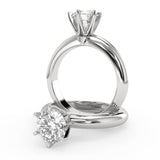 Anillo de Compromiso Estilo Solitario con Diseño Exclusivo de Seis Puntas y hecho en Platino. Puedes seleccionar el Diamante de tu preferencia para esta Montura o nos puedes contactar para que te ayudemos a elegir el Diamante ideal contigo. Precio es por la Montura Unicamente.