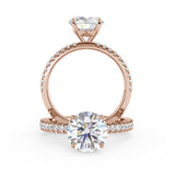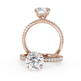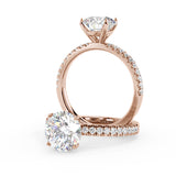 Anillo de Compromiso Estilo Solitario con Diseño Micropave de 4 Puntas y Pave de Diamantes ancho de 1.8mm esta hecho en Oro Rosa de 18 Kilates e Incluye Diamantes en la Montura. Puedes seleccionar el Diamante de tu preferencia para esta Montura o nos puedes contactar para que te ayudemos a elegir el Diamante ideal contigo. Precio es por la Montura Unicamente.