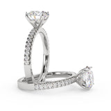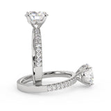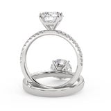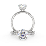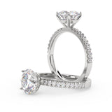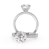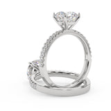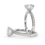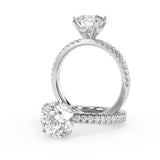 Anillo de Compromiso Estilo Solitario con Diseño Micropave de 4 Puntas y Pave de Diamantes ancho de 1.8mm esta hecho en Platino e Incluye Diamantes en la Montura. Puedes seleccionar el Diamante de tu preferencia para esta Montura o nos puedes contactar para que te ayudemos a elegir el Diamante ideal contigo. Precio es por la Montura Unicamente.