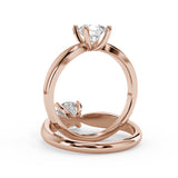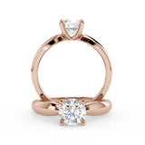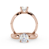 Anillo de Compromiso diseño Tapered estilo Solitario con exclusivo de 4 puntas, está hecho en Oro Rosa de 14 quilates. Puedes seleccionar el Diamante de tu preferencia para esta montura o nos puedes contactar para que te ayudemos a elegir el Diamante ideal contigo. Precio únicamente por la montura.