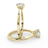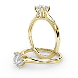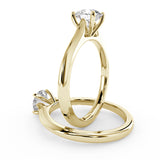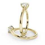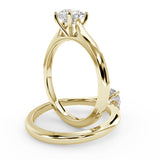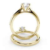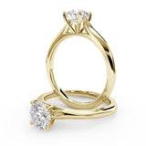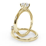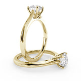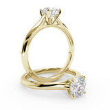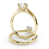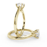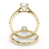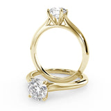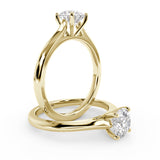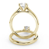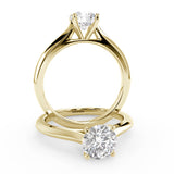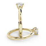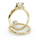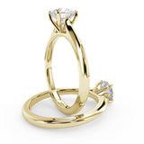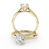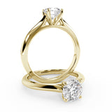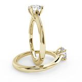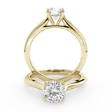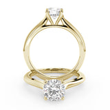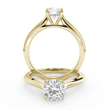Anillo de Compromiso Estilo Solitario con Diseño Catedral de Cuatro Puntas y ancho de 2.0mm esta hecho en Oro Amarillo de 18 Kilates. Puedes seleccionar el Diamante de tu preferencia para esta Montura o nos puedes contactar para que te ayudemos a elegir el Diamante ideal contigo. Precio es por la Montura Unicamente.