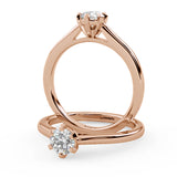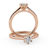 Anillo de Compromiso Estilo Solitario con Diseño Catedral de Seis Puntas y ancho de 2.0mm esta hecho en Oro Rosa de 18 Kilates. Puedes seleccionar el Diamante de tu preferencia para esta Montura o nos puedes contactar para que te ayudemos a elegir el Diamante ideal contigo. Precio es por la Montura Unicamente.