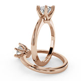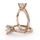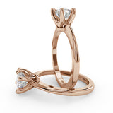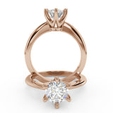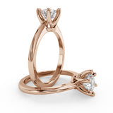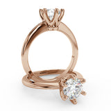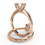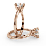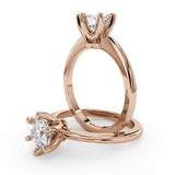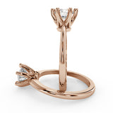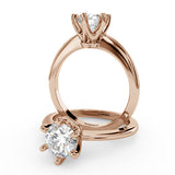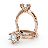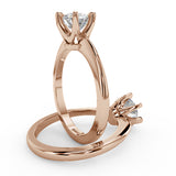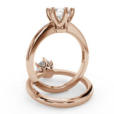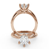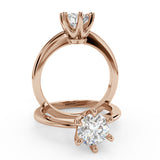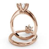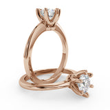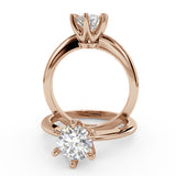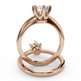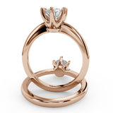 Anillo de Compromiso Estilo Solitario con Diseño Clasico de Seis Puntas y ancho de 1.8mm esta hecho en Oro Rosa de 14 Kilates. Puedes seleccionar el Diamante de tu preferencia para esta Montura o nos puedes contactar para que te ayudemos a elegir el Diamante ideal contigo. Precio es por la Montura Unicamente.