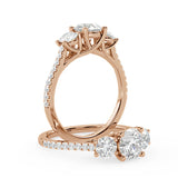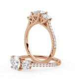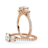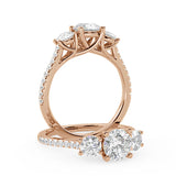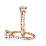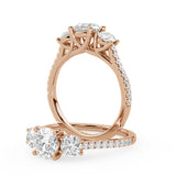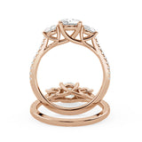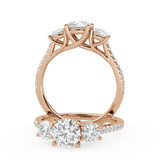 Montura Para Anillo de Compromiso Tres Piedras "Trinity" en Oro Rosa de 14K