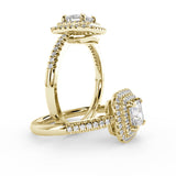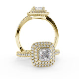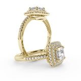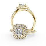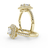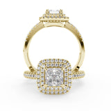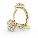 Montura de Anillo de Compromiso Estilo Doble Halo Cuadrado de Diamantes de Diseño Exclusivo y ancho de 6.0mm con Pavé de Diamantes, está hecho en Oro Amarillo de 18 Kilates e Incluye 0.30 Quilates de Diamantes en la Montura. Crea un anillo único eligiendo tu gema central favorita en el siguiente paso. Contacta a tu asesor vía whatsapp para más fotos y videos o bien para la elección del diamante ideal. El precio únicamente es por la montura.