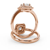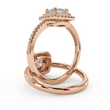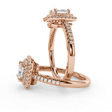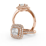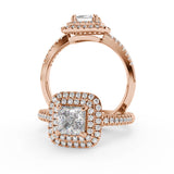 Montura de Anillo de Compromiso Estilo Doble Halo Cuadrado de Diamantes de Diseño Exclusivo y ancho de 6.0mm con Pavé de Diamantes, está hecho en Oro Rosa de 14 Kilates e Incluye 0.30 Quilates de Diamantes en la Montura. Crea un anillo único eligiendo tu gema central favorita en el siguiente paso. Contacta a tu asesor vía whatsapp para más fotos y videos o bien para la elección del diamante ideal. El precio únicamente es por la montura.