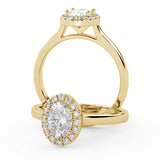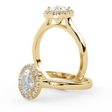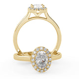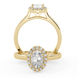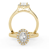 Montura Estilo Halo Oval 6.5 X 4.5 MM de Diamantes con Diseño Exclusivo y ancho de 2.0mm esta hecho en Oro Amarillo de 14 Kilates. Crea un anillo único eligiendo tu gema central favorita en el siguiente paso. Contacta a tu asesor vía whatsapp para más fotos y videos o para que te ayude a elegir el Diamante ideal contigo. Precio es por la Montura Unicamente.