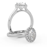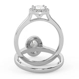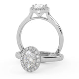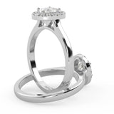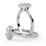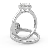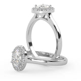 Montura Estilo Halo Oval 6.5 X 4.5 MM de Diamantes con Diseño Exclusivo y ancho de 2.0mm esta hecho en Oro Blanco de 14 Kilates. Crea un anillo único eligiendo tu gema central favorita en el siguiente paso. Contacta a tu asesor vía whatsapp para más fotos y videos o para que te ayude a elegir el Diamante ideal contigo. Precio es por la Montura Unicamente.
