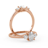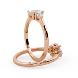 Montura Para Anillo de Compromiso Tres Piedras "Cosmos" en Oro Rosa de 14K.