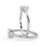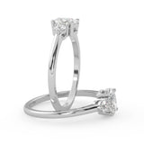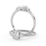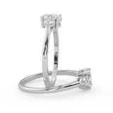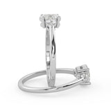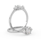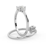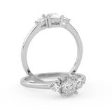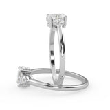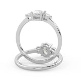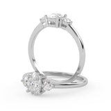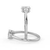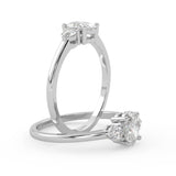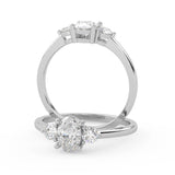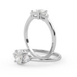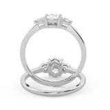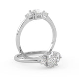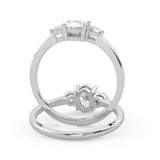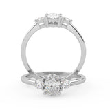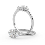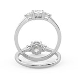 Montura Estilo Tres Piedras Oval 6.5x4.5 Diseño Exclusivo de 4 Puntas Ancho de 1.9mm en Oro Blanco de 14K. Crea un anillo único eligiendo tu gema central favorita en el siguiente paso. Contacta a tu asesor vía whatsapp para más fotos y videos o bien para la elección del diamante ideal. El precio únicamente es por la montura.