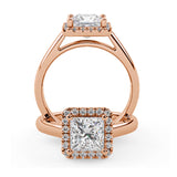 Montura Para Anillo de Compromiso Halo "Aura" en Oro Rosa de 18K