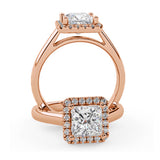 Montura Estilo Halo Cuadrado de Diamantes de Diseño Exclusivo está hecho en Oro Rosa de 18 Kilates e Incluye Diamantes en la Montura. Crea un anillo único eligiendo tu gema central favorita en el siguiente paso. Contacta a tu asesor vía whatsapp para más fotos y videos o bien para la elección del diamante ideal. El precio únicamente es por la montura.