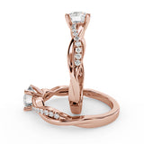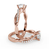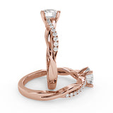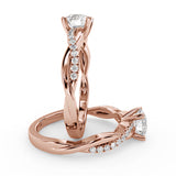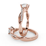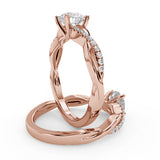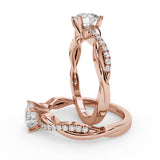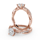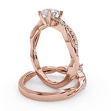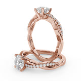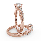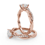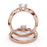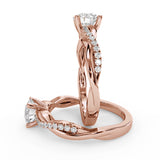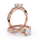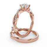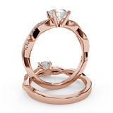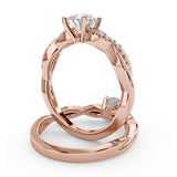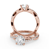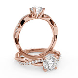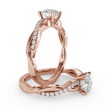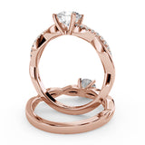 Anillo de Compromiso Estilo Infinity de Diamantes con Alianza Incluida de Diseño Enroscado y ancho de 2.0mm con Pave de Diamantes esta hecho en Oro Rosa de 14 Kilates e Incluye 0.25 Quilates de Diamantes. Puedes seleccionar el Diamante de tu preferencia para esta Montura o nos puedes contactar para que te ayudemos a elegir el Diamante ideal contigo. Precio es por la Montura.