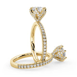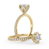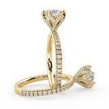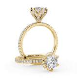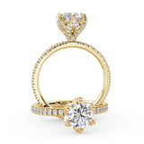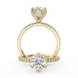 Montura Estilo Solitario con Diseño Micropavé de 6 Puntas y Diamantes en la Canasta con Ancho de 1.8 mm está hecho en Oro Amarillo de 18 Quilates e Incluye Diamantes en la Montura.