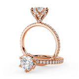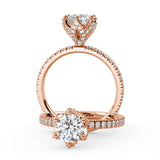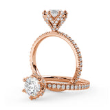 Montura Estilo Solitario con Diseño Micropavé de 6 Puntas y Diamantes en la Canasta con Ancho de 1.8mm esta hecho en Oro Rosa de 14 Kilates e Incluye Diamantes en la Montura. Crea un anillo único eligiendo tu gema central favorita en el siguiente paso. Contacta a tu asesor vía whatsapp para más fotos y videos o bien para la elección del diamante ideal. El precio únicamente es por la montura.