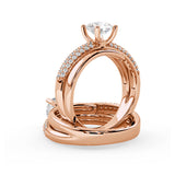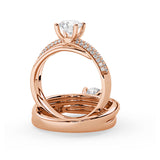 Anillo de Compromiso Estilo Infinity de Diamantes Diseño Enroscado con Pavé de Diamantes está hecho en Oro Rosa de 18 Quilates e Incluye 0.29 Quilates de Diamantes.