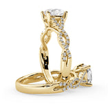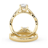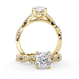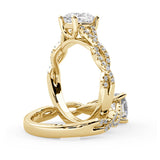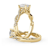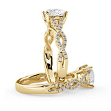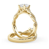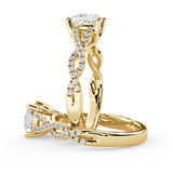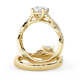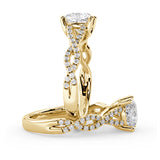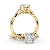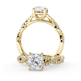 Anillo de Compromiso Estilo Infinity de Diamantes Diseño Enroscado con Pavé de Diamantes está hecho en Oro Amarillo de 14 Quilates e Incluye 0.33 Quilates de Diamantes.