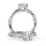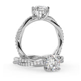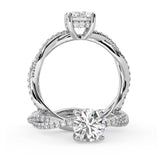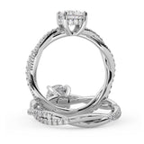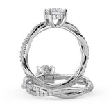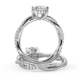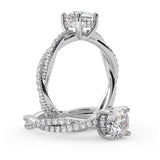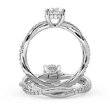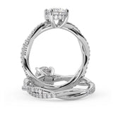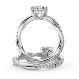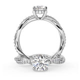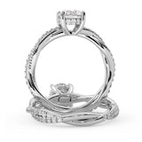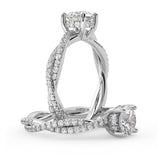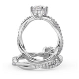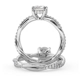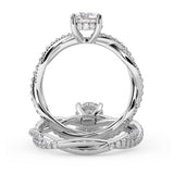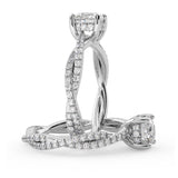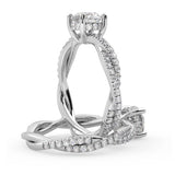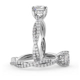 Anillo de Compromiso Estilo Infinity de Diamantes Diseño Enroscado con Pavé de Diamantes está hecho en Oro Blanco de 14 Quilates e Incluye 0.74 Quilates de Diamantes.