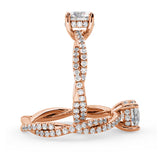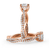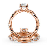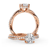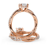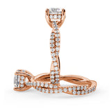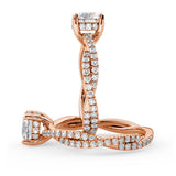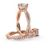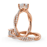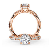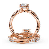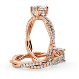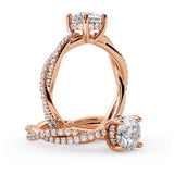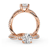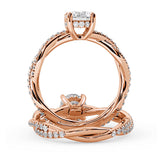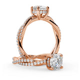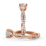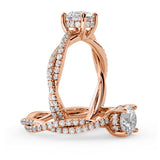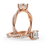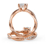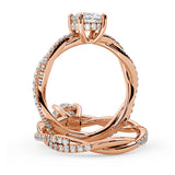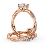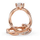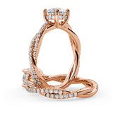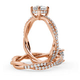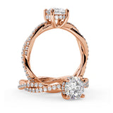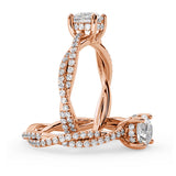 Anillo de Compromiso Estilo Infinity de Diamantes Diseño Enroscado con Pavé de Diamantes está hecho en Oro Rosa de 18 Quilates e Incluye 0.74 Quilates de Diamantes.