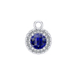 Pendiente Redondo de Zafiro Natural de 4.5mm con Halo de Diamantes en Oro Blanco de 14K