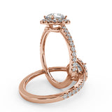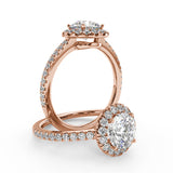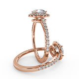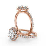 Montura Para Anillo de Compromiso Halo y Pavé "Nova" en Oro Rosa de 14K