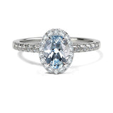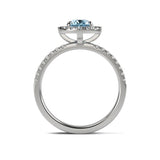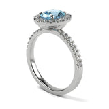 Anillo de Compromiso Halo y Pavé "Lady Diana Aqua" con Aguamarina Natural de 8x6mm en Oro de 14K
