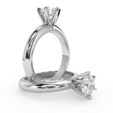Montura Estilo Solitario con Diseño Exclusivo de Seis Puntas y hecho en Oro Blanco de 14 Kilates. Crea un anillo único eligiendo tu gema central favorita en el siguiente paso. Contacta a tu asesor vía whatsapp para más fotos y videos o bien para la elección del diamante ideal. El precio únicamente es por la montura.