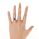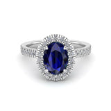 Anillo de Compromiso Halo y Pavé "Lady Diana" con Zafiro Natural de 8x6mm en Oro de 14K