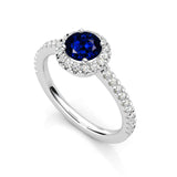 Anillo de Compromiso Halo y Pavé "Sapphire Nova" con Zafiro Natural de 6mm en Oro de 14K