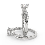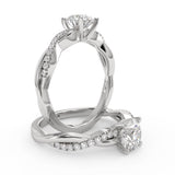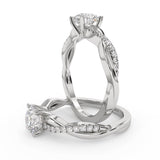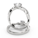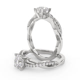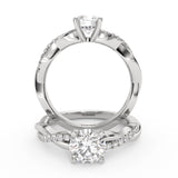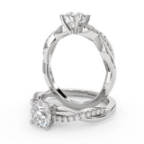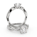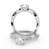 Anillo de Compromiso Estilo Infinity de Diamantes Diseño Enroscado ancho de 2.0mm con Pave de Diamantes esta hecho en Oro Blanco de 14 Kilates e Incluye 0.25 Quilates de Diamantes. Puedes seleccionar el Diamante de tu preferencia para esta Montura o nos puedes contactar para que te ayudemos a elegir el Diamante ideal contigo. Precio es por la Montura.